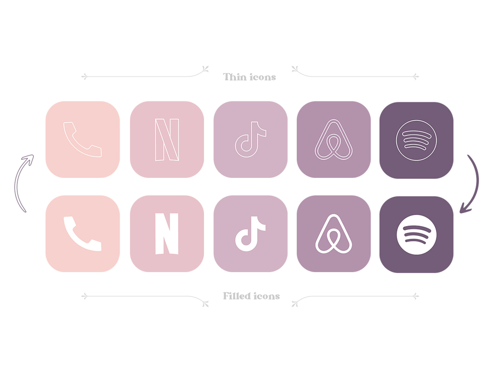 This purple dream icon pack includes icons for all your favorite apps, including social media, productivity, entertainment, and more. With its vibrant and refreshing design, this purple and pink shades Icon Pack is the perfect choice for anyone looking to add a touch of glamorous and sunset to their iPhone.