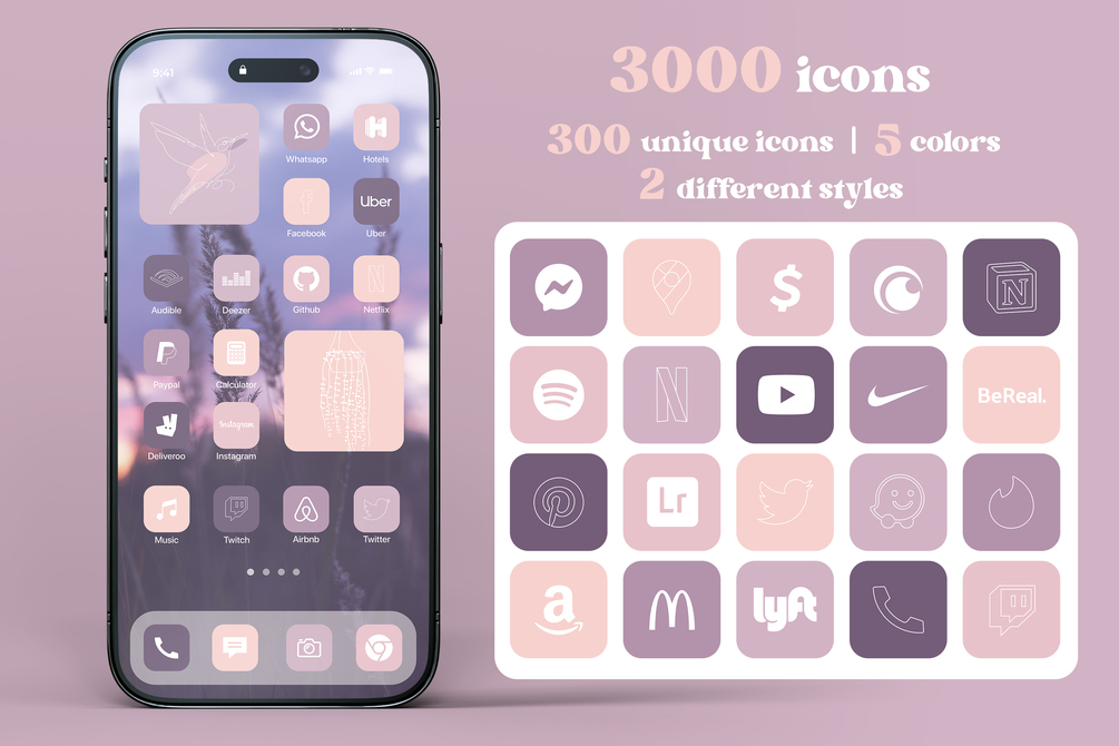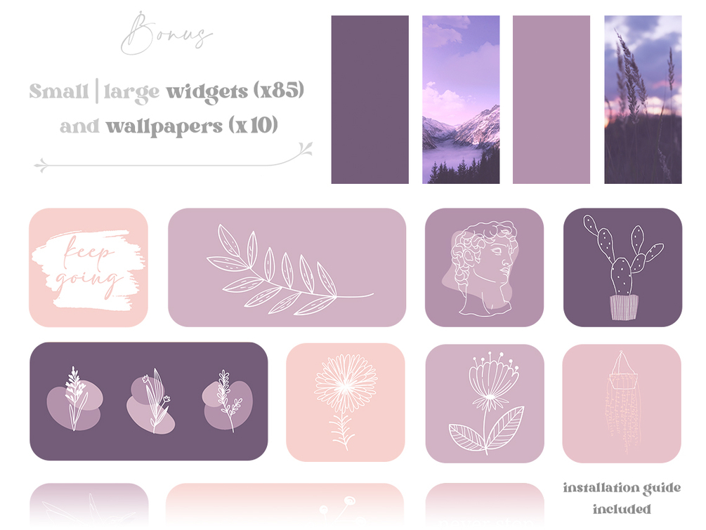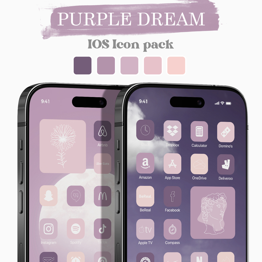 PURPLE DREAM - iOS Icons Pack | iPhone iOS 16 App Aesthetic | Minimalist | 3000 icons in 5 colors | Bonus widgets and wallpapers